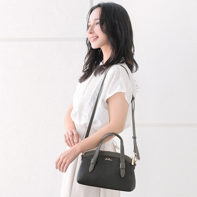 落ち着いた配色でまとまったコンパクトなサイズのショルダーバッグ。