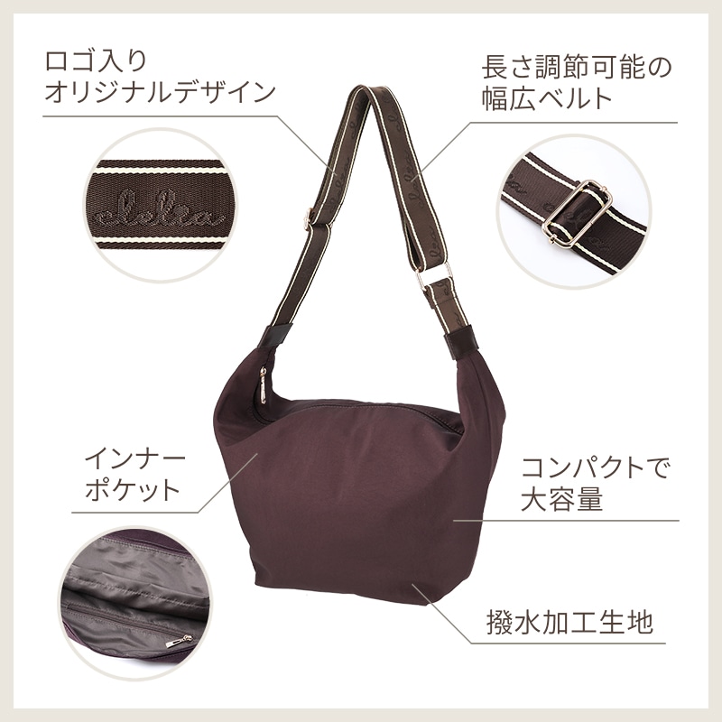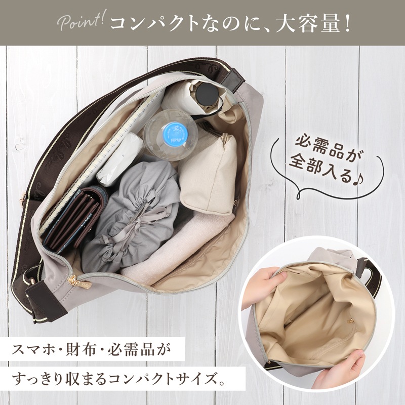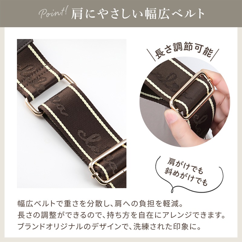 長さ調節も可能(56〜98cm)で、肩がけ・斜めがけと持ち方を自在にアレンジできます。