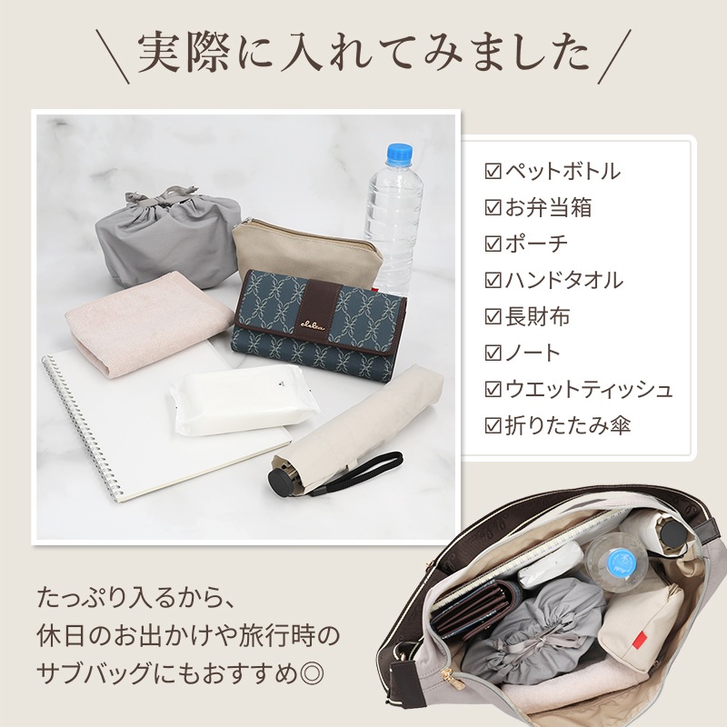 休日のお出かけや旅行時のサブバッグに必要なものが全てすっぽり収まります。
