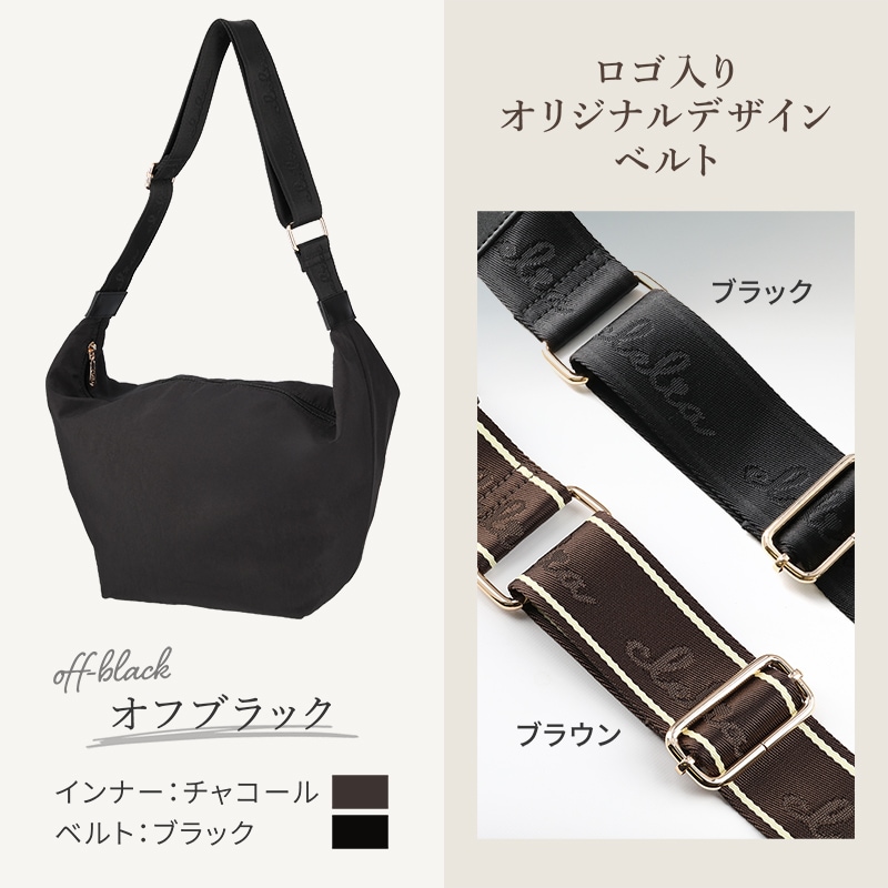 ロゴ入りのオリジナルデザイン幅広ベルトが重さを分散し、肩への負担を軽減。